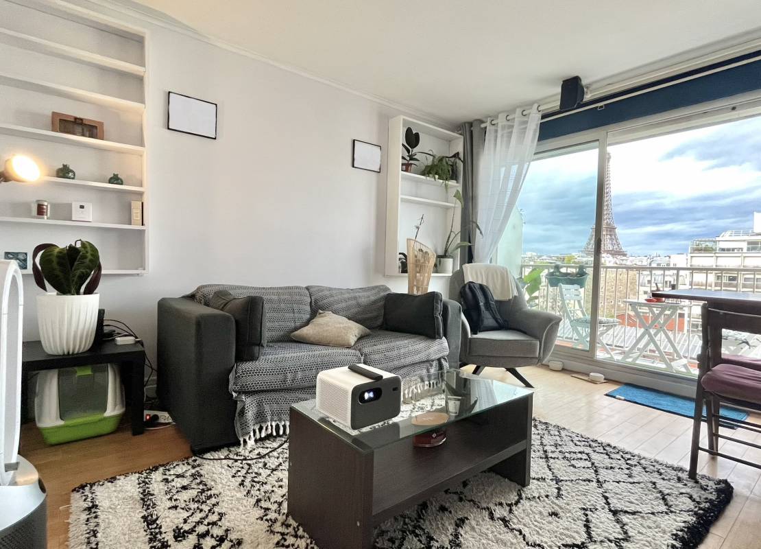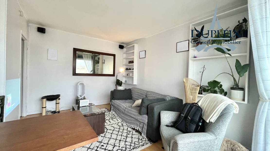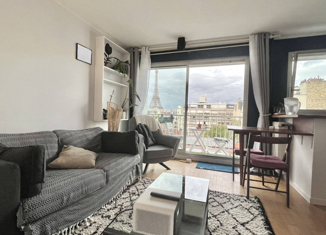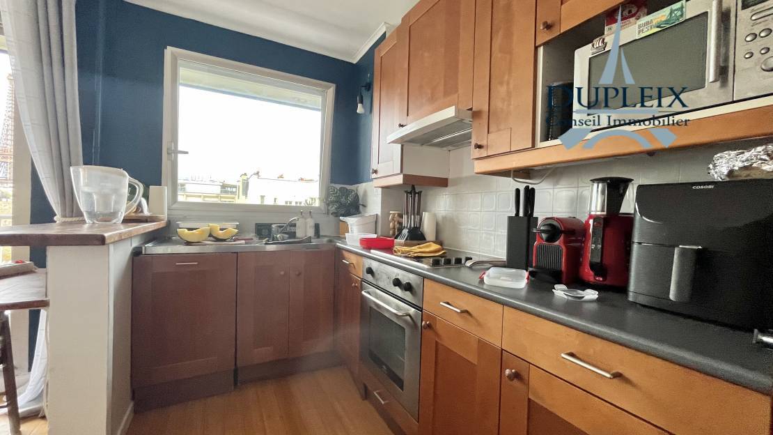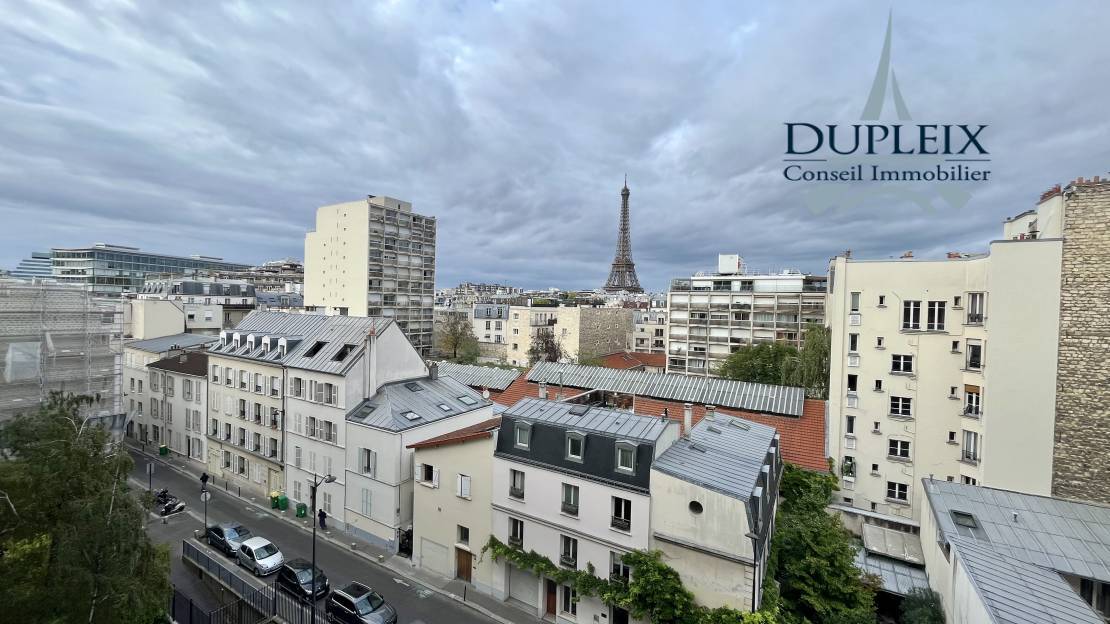 Descriptif: L'AGENCE DUPLEIX vous un très joli 2 Pièces situé dans un immeuble récent d'excellent standing. Au 6ème étage avec ascenseur, l'appartement se compose d'une entrée, un séjour ouvrant sur un balcon de 9m2 offrant une vue imprenable sur la Tour Eiffel, une cuisine américiane, un dégagement avec placards, une chambre ainsi q'une salle de bains avec wc.