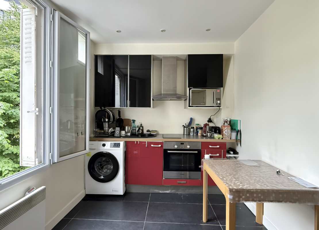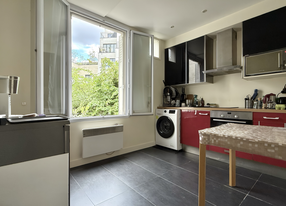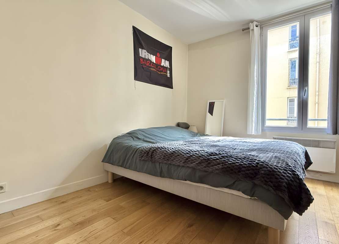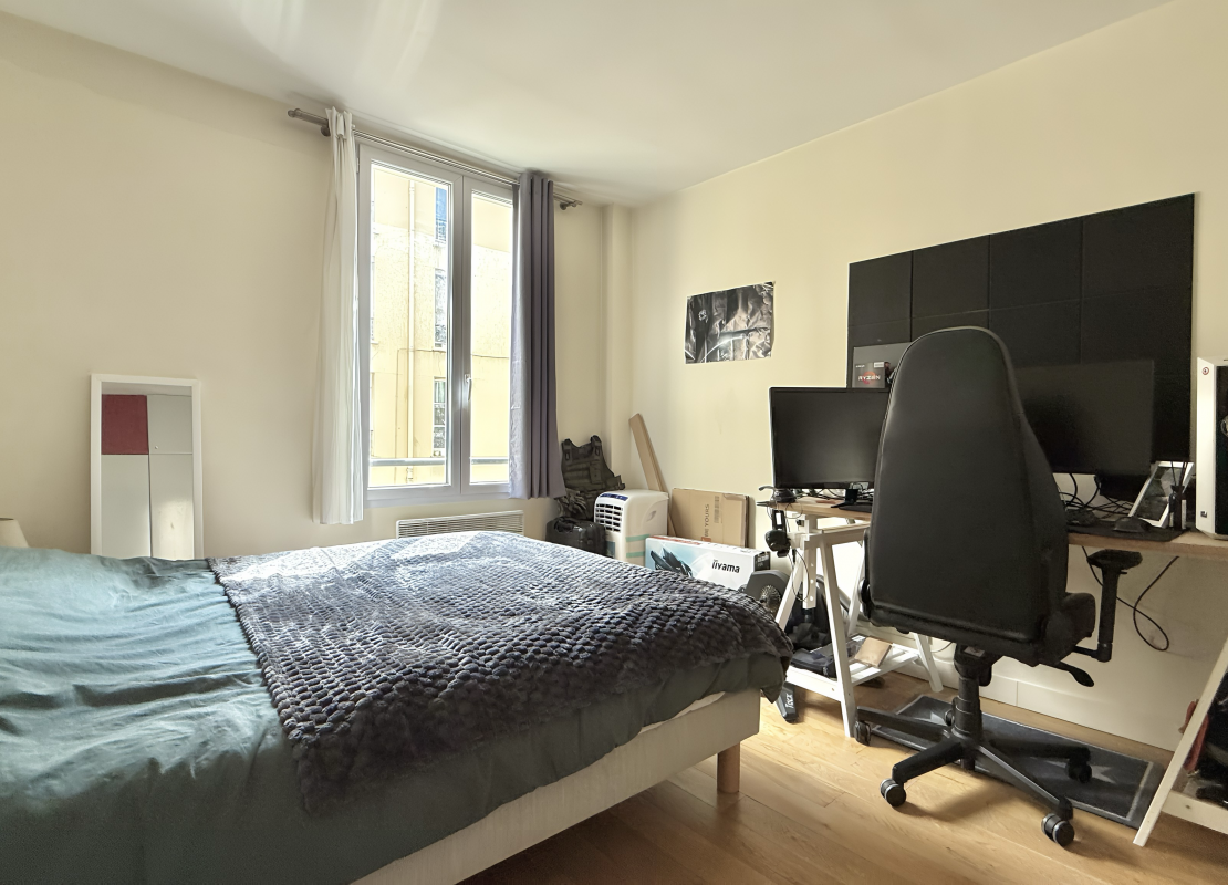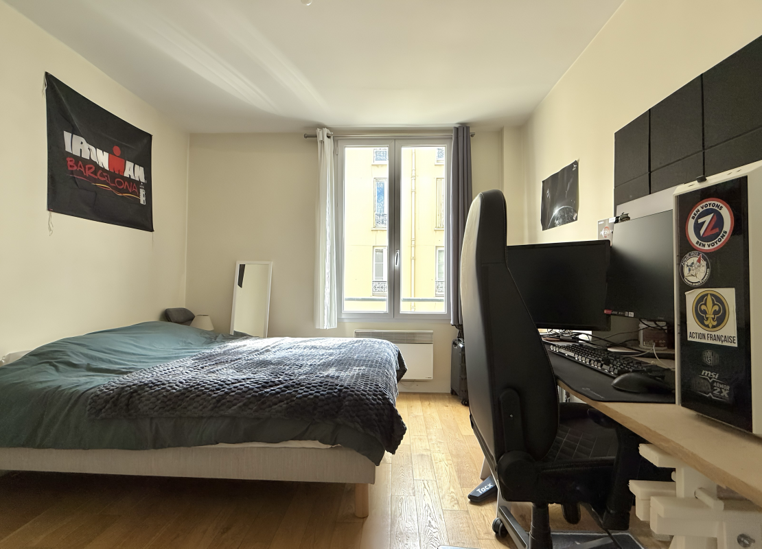 Au 2ème étage d'un immeuble ancien, il se compose d'une pièces avec cuisine ouverte de 10m2, d'une chambre de 13m2, d'une salle d'eau avec wc. L'appartement est traversant avec d'un coté une Vue sur la rue, plein sud et de l'autre sur une cour arborée.