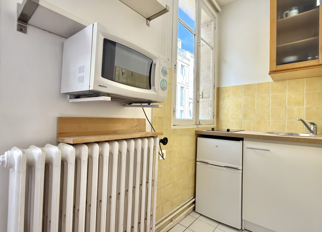 Au 2ᵉ étage, l'appartement se compose d'une entrée, d’un séjour lumineux avec 2 fenêtres, d'une cuisine ouverte, d'une salle d'eau avec wc.
