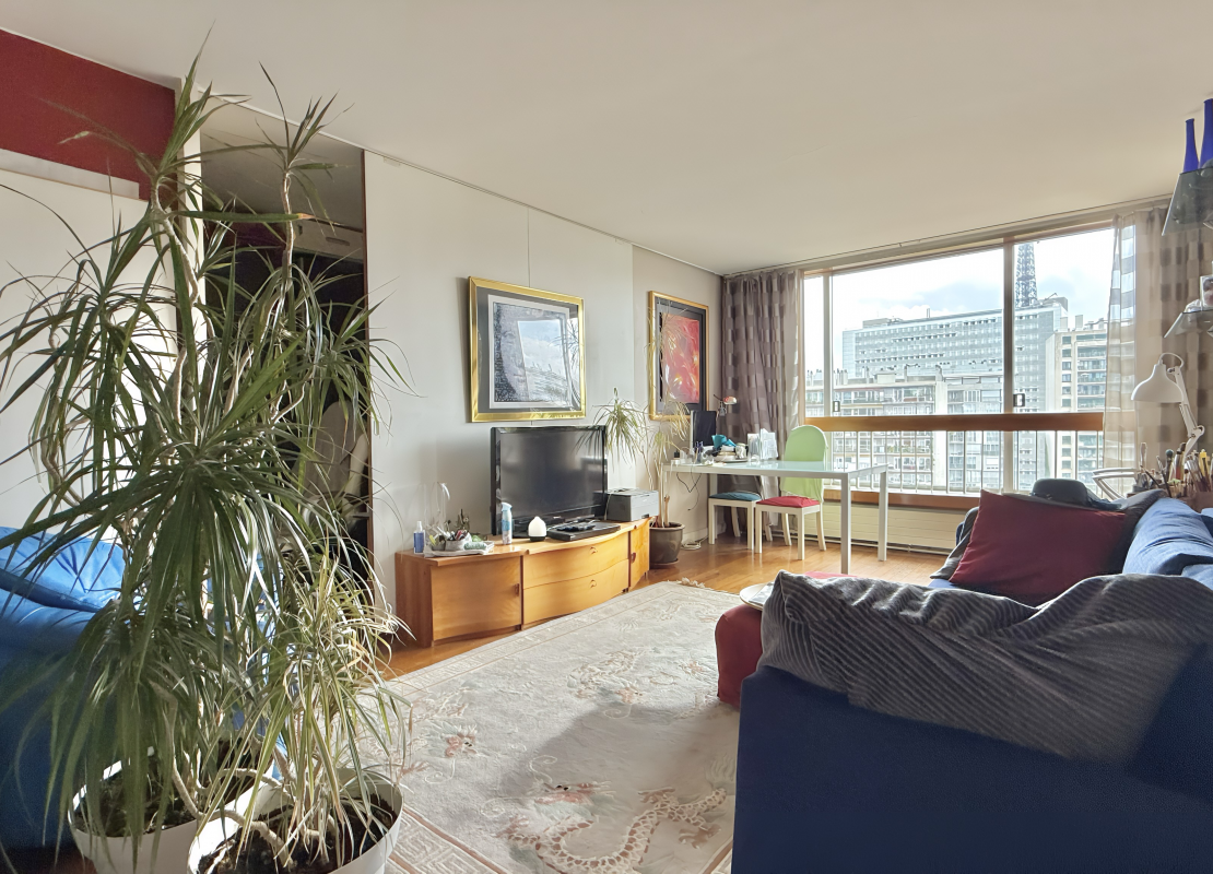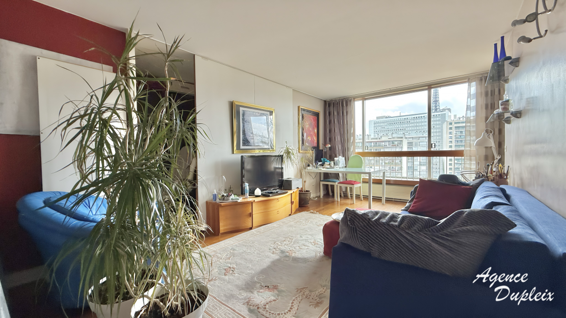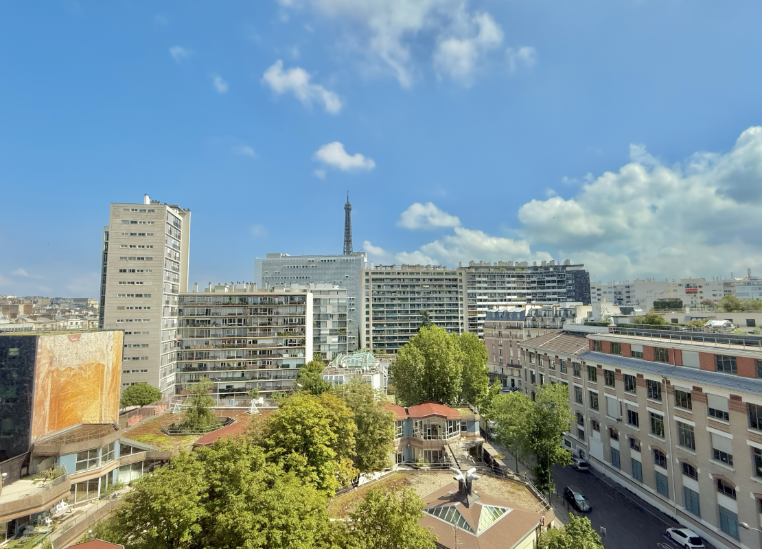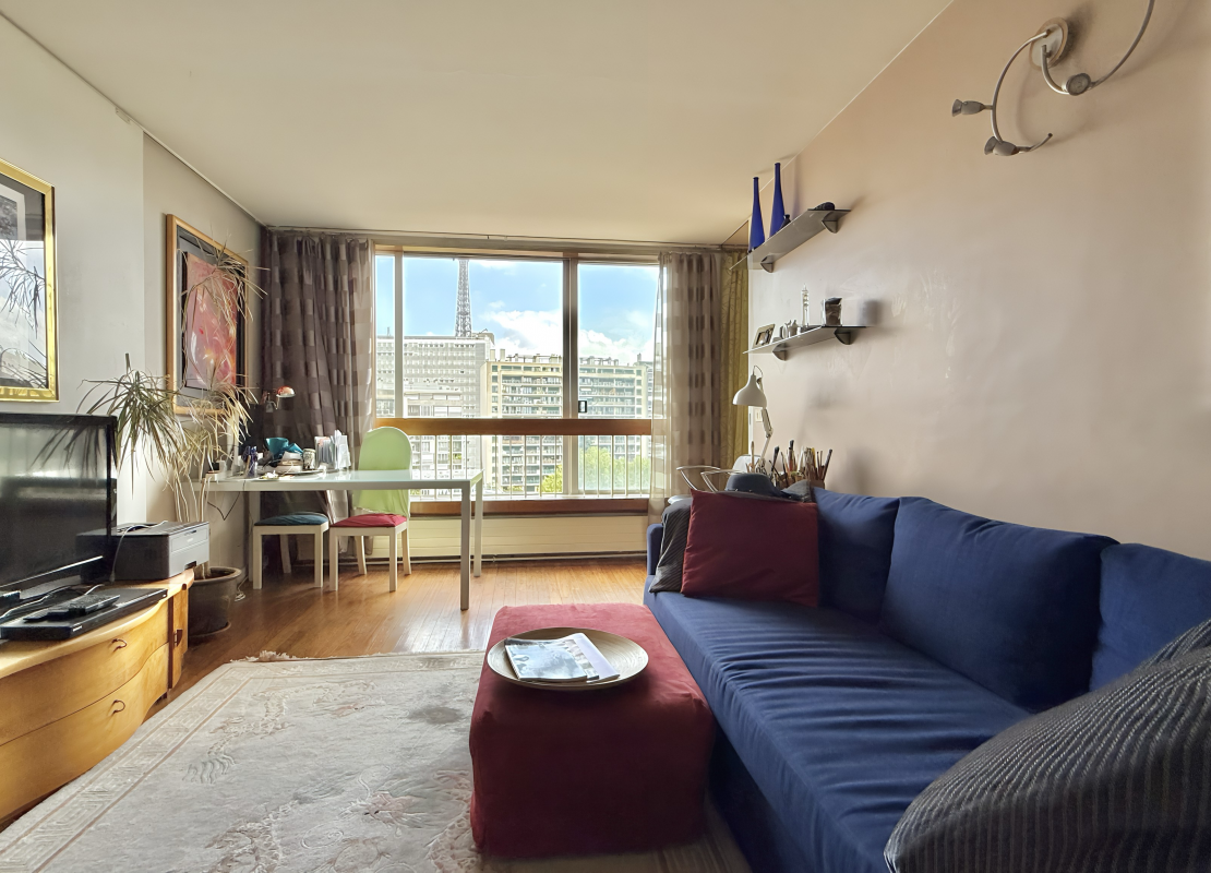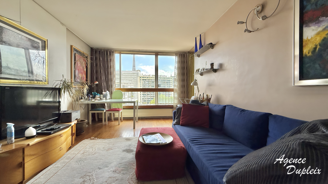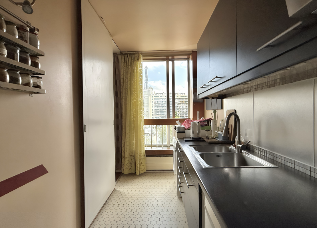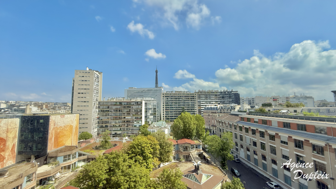Au 7ème étage avec ascenseur d'un immeuble de standing sécurisé, il se compose de: une entrée avec placard, une un salon offrant une vue dégagée face à la Tour Eiffel, une cuisine séparée, deux chambres, une salle d'eau, une salle de bains ainsi qu'un WC séparée.