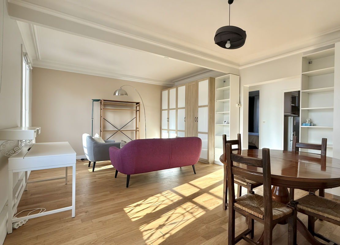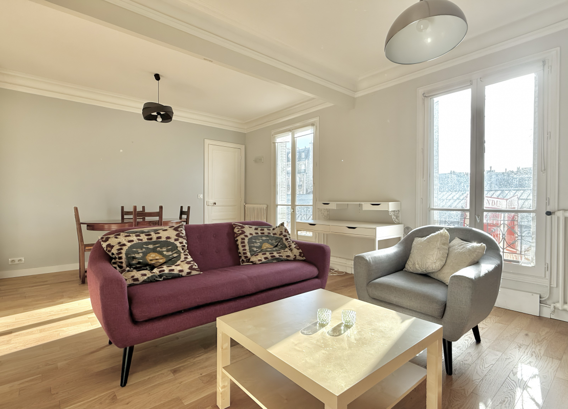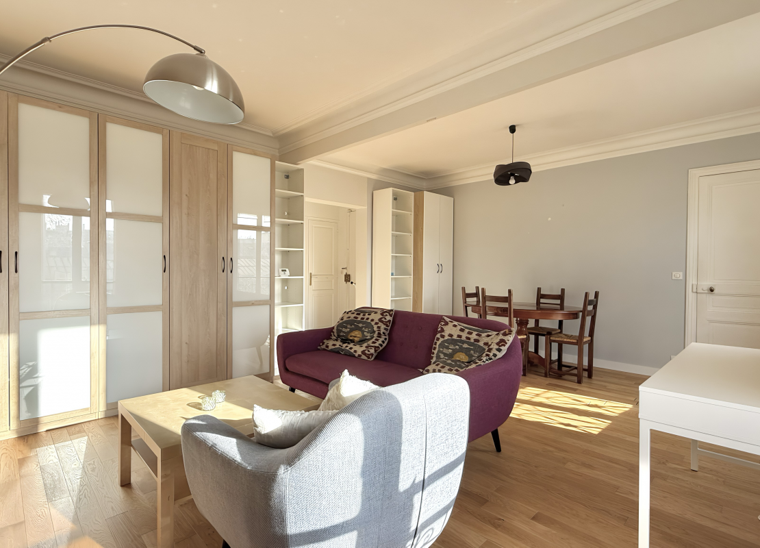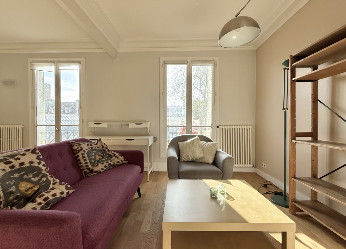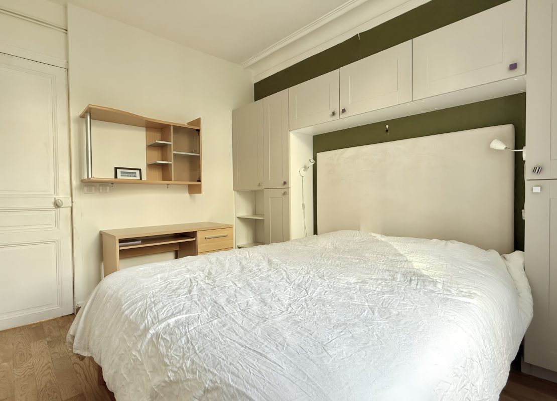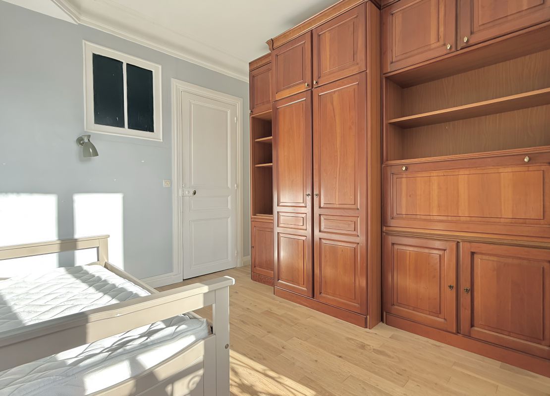 Situé au 4ᵉ étage d’un bel immeuble en pierre de taille, cet appartement traversant se compose d’une entrée, d’un double séjour exposé sud, sans vis-à-vis, d’une cuisine séparée, de deux chambres, dont une côté cour offrant une vue sur la Tour Eiffel, d’une salle d’eau, d’une buanderie ainsi que de WC indépendants.