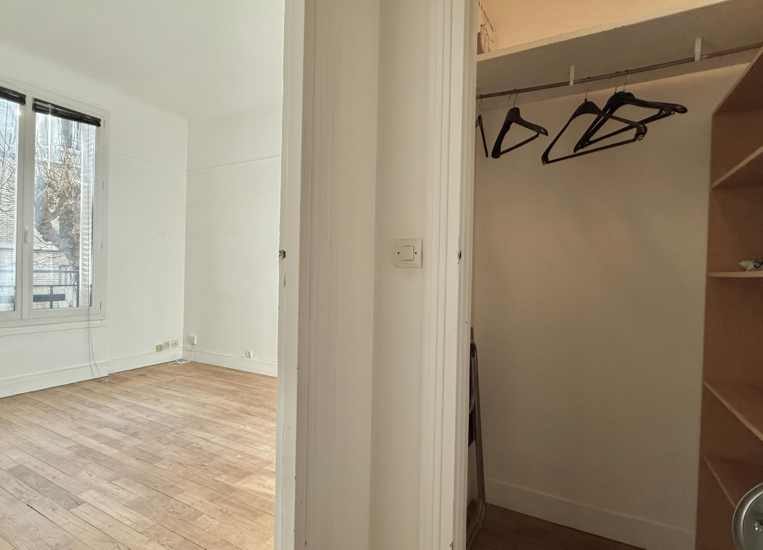 Au 1er étage avec ascenseur d'un immeuble ancien, le studio se compose d'une entrée avec rangements, d'une pièce principale lumineuse, orientée plein sud et donnant sur une cour arborée et dégagée, d'une cuisine séparée avec une fenêtre, d'une salle de bains avec WC profitant également d'une fenêtre, ainsi que d'un grand dressing.