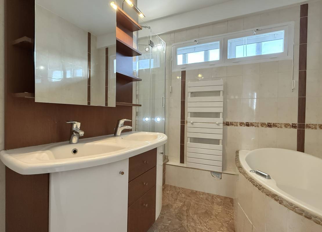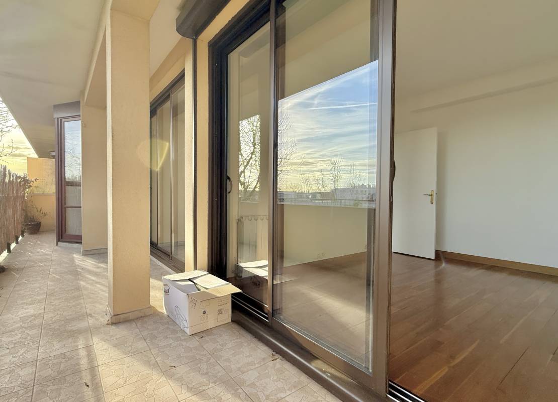 Un appartement traversant de 4 pièces au 3ème et dernier étage avec ascenseur se composant : d'une entrée, un séjour de 21m2 ouvrant sur un long et large balcon, une cuisine séparée aménagée et équipée de plaques, hotte, réfrigérateur- congélateur, four, micro-ondes et lave vaisselle ouvrant sur une longue loggia, 3 chambres dont une avec placards, un dégagement avec placards, une salle de douches avec douche et baignoire, des WC séparés.