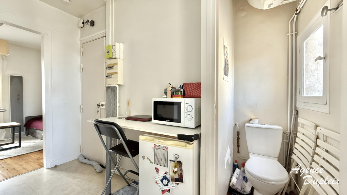 Très bonne distribution. Surface : 17,2m² carrez.