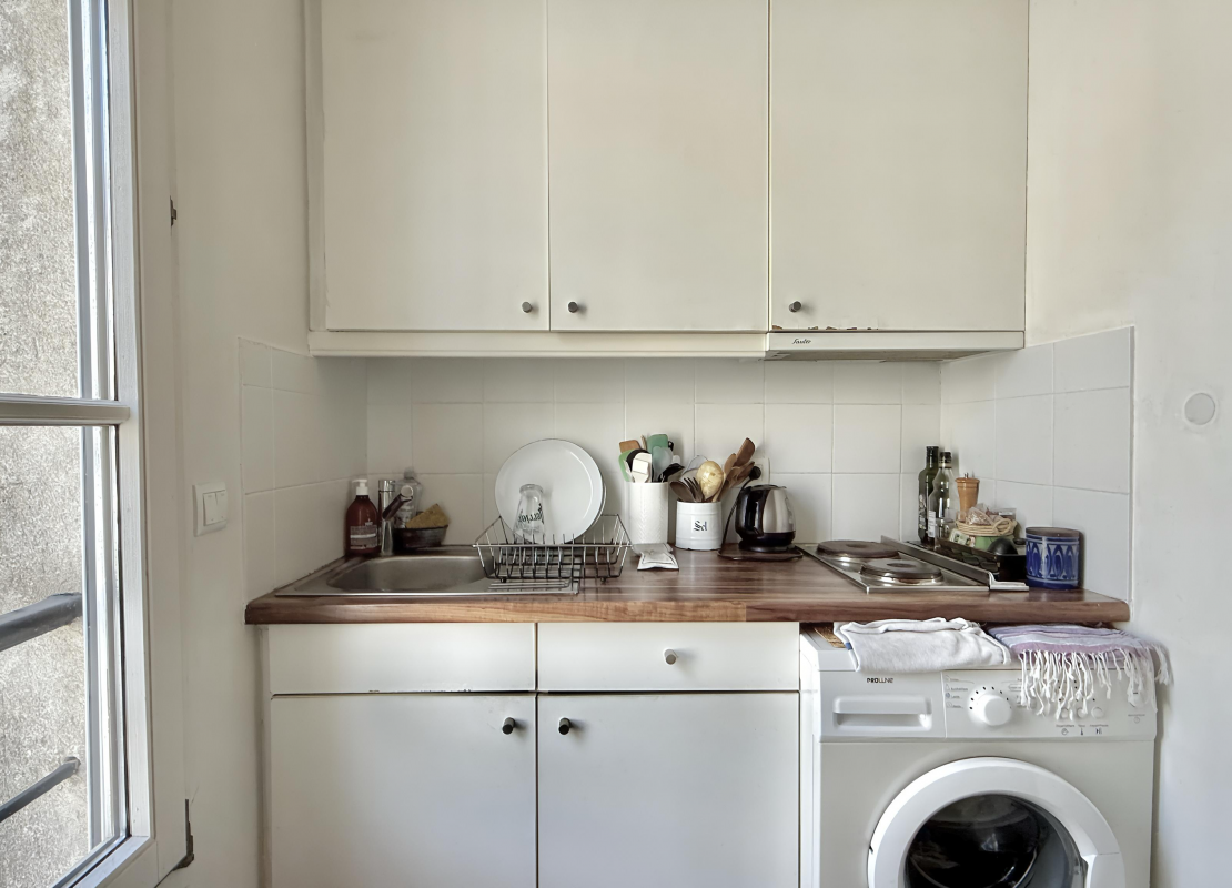 Au 4ème étage par escalier d'un immeuble de 1880, il se compose d'une pièce principale lumineuse, orientée plein sud et donnant sur la rue, d' une cuisine équipée avec une grande fenêtre ouvrant sur une cour dégagée, d'une salle d'eau, ainsi que d'un WC séparés avec une fenêtre.